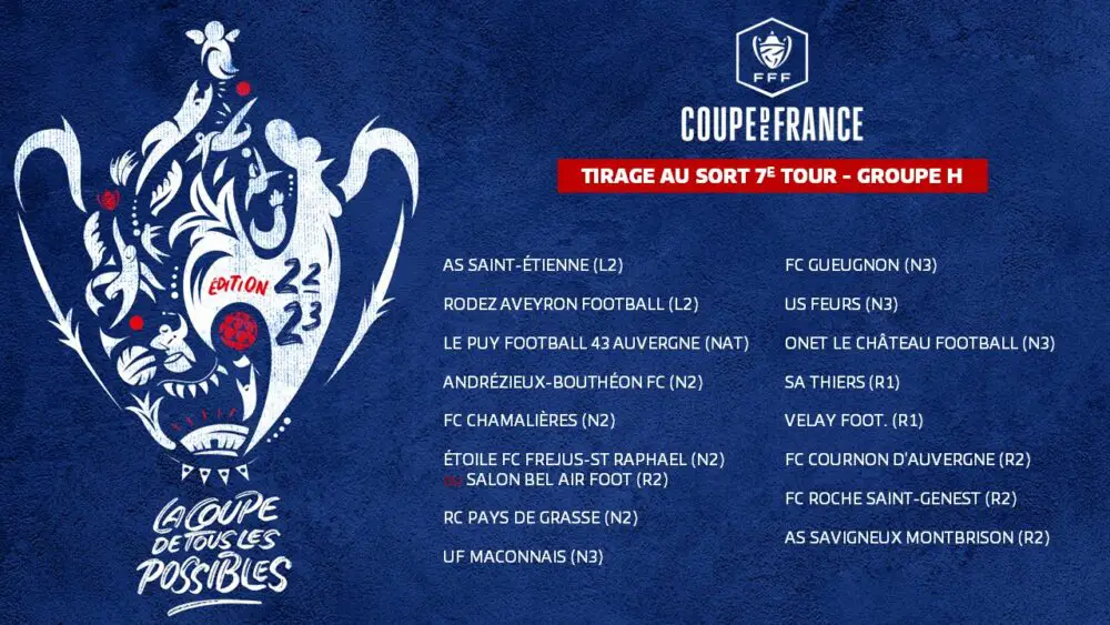 C'est aujourd'hui que se déroule le tirage du 7e et 8e tour de la coupe de france édition 2022-2023. En effet, les clubs amateurs se sont déjà affrontés depuis 6 tours et un premier écremage a été fait. Lors de ce 7e tour, l'AS Saint-Etienne et tous les clubs de ligue 2 font leur entrée. À noter que les équipes de ligue 1 feront leur apparition au 9e tour. Voici le tirage en direct sur notre page.