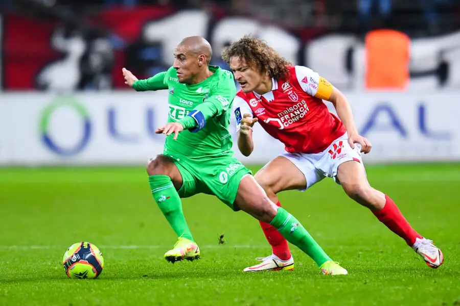 10 Wahbi KHAZRI (asse) - 02 Wout FAES (sdr) during the Ligue 1 Uber Eats match between Reims and Saint Etienne at Stade Auguste Delaune on December 11, 2021 in Reims, France. (Photo by Philippe Lecoeur/FEP/Icon Sport)