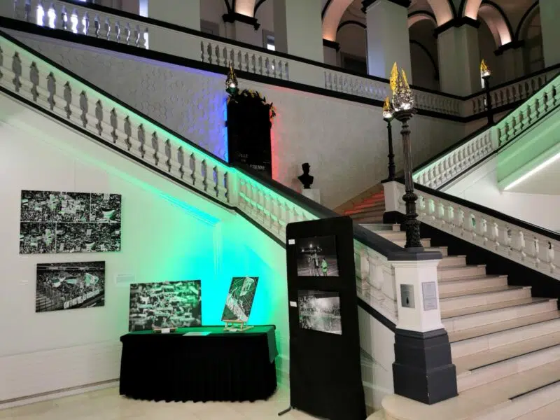 À travers leur exposition intitulée "90 ans en vert et blanc" qui fait référence aux 90 ans que le club fête cette année, on peut retrouver de nombreuses images mettant en avant les origines du club, le Chaudron, un club précurseur, l'épopée de 1976, le peuple Vert, les tifos, le Derby, les géants verts, les matches de légende, diver(t)sité (féminines, foot-fauteuil), un héritage à transmettre...