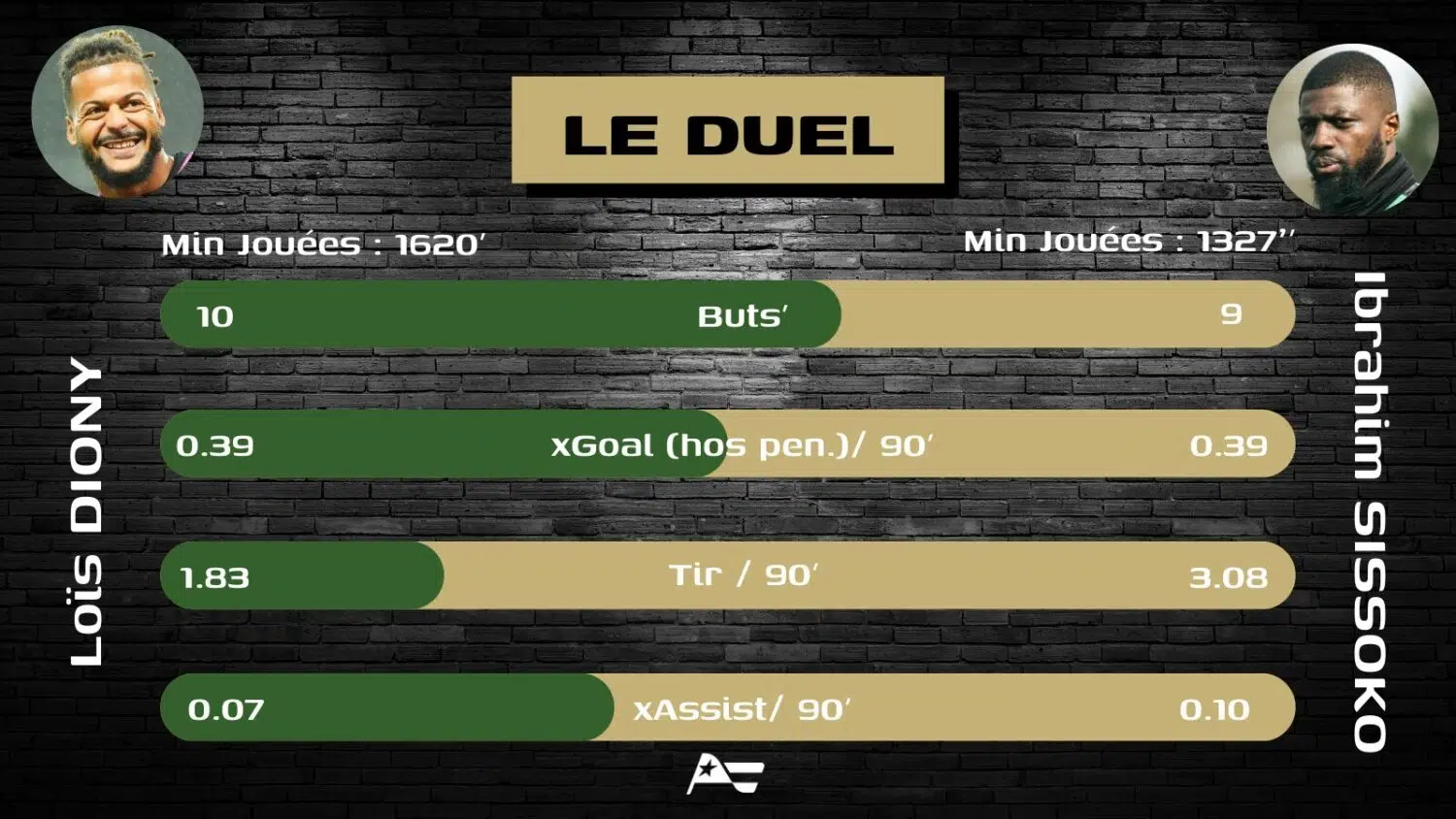 Malgré un but de moins que son compère angevin, Ibrahim Sissoko semble néanmoins bien plus efficace dans le jeu, notamment sans ballon et grâce à son pressing court à la relance. Plus athlétique, il a remporté bien plus de duels que Loïs Diony (78% contre 64% pour le français) et dos au jeu, il est capable de distribuer de la tête, des deux pieds et d’écarter le jeu plutôt aisément.