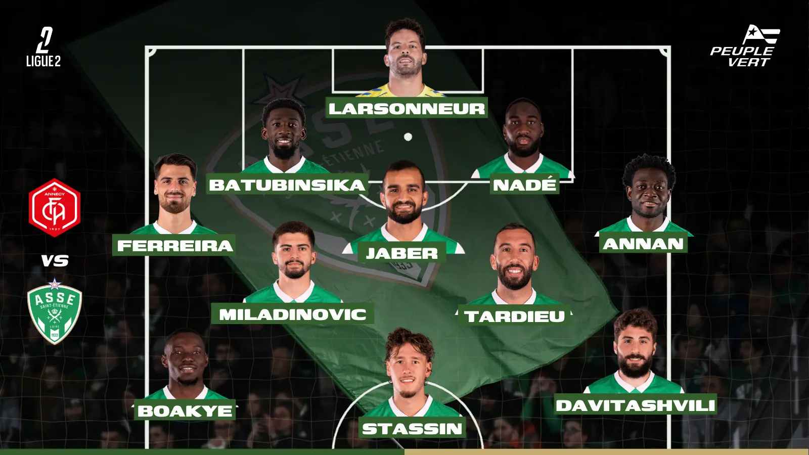 Ce soir en Haute-Savoie, Dylan Batubinsika devrait retrouver une place de titulaire avec l’ASSE. Buteur avec la réserve la semaine passée, le Congolais a retrouvé du temps de jeu après sa mise à l’écart du groupe pro cet été. Le défenseur formé au PSG n’a plus été titularisé depuis la défaite des Verts face à son club formateur (1-6), le 29 mars dernier. L’ancien d’Antwerp devrait alors retrouver Mickaël Nadé avec qui il a été associé à de nombreuses reprises depuis janvier 2024. Ebenezer Annan devrait, quant à lui, enchaîner une nouvelle cape sur le couloir gauche de cette défense stéphanoise.