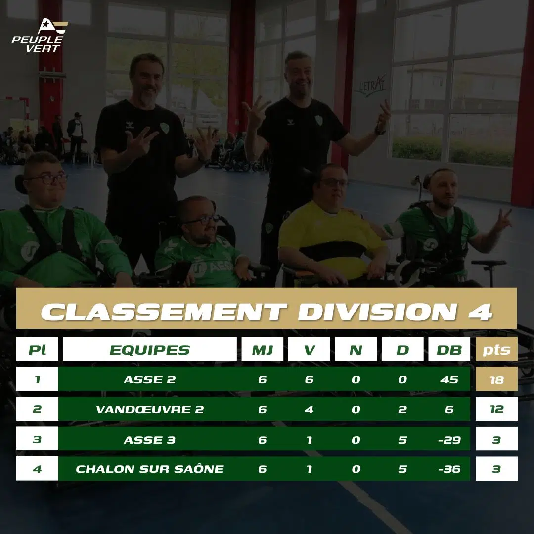 Ce dimanche, l’équipe d’ASSE Cœur-vert Aesio-Mutuelle B s’est adjugé le titre de champion de Division 4 de la poule Est. Un titre précieux qui leur permettra de jouer en troisième division la saison prochaine !