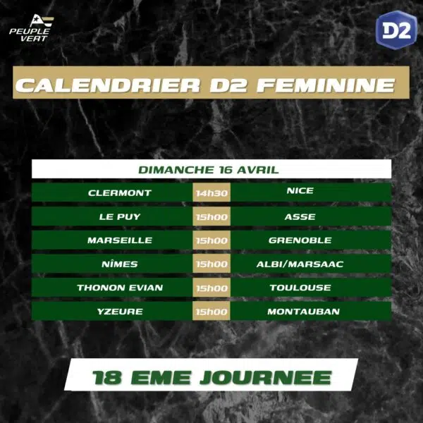 Il y a 2 semaines les vertes l’ont emporté à domicile 4-0 face à Toulouse ! Et dans le même temps, l’OM a perdu face à son rival niçois ! De quoi prendre une option sérieuse sur la remontée en D1 (une seule équipe monte) car les joueuses coachées par Laurent Mortel ont désormais un confortable matelas de 5 points d’avance !