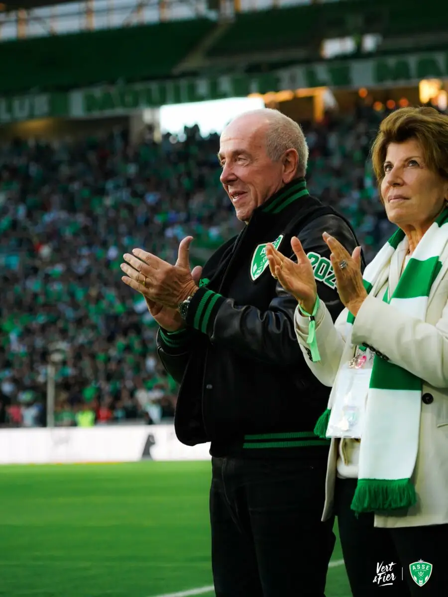 C'était annoncé par Le Progrès ce jeudi, mais le "big boss" de l'AS Saint-Etienne, est venu se présenter à son nouveau club ce week-end. En effet, le canadien de 79 ans s'est présenté aux salariés du club. Il a ensuite été aperçu du côté du stade Salif Keita. Tappant dans la main des joueuses à l'entrée sur la pelouse, le propriétaire du club est venu s'installer en tribunes au côté du board stéphanois. Une visite du musée et d'un entraînement du foot fauteuil, le voila dans le chaudron. Le speaker du stade Emmanuel Demont le présente au peuple Vert. Il salue la foule en compagnie de son époux. Les supporters lui offrent un accueil chaleureux avec de nombreux applaudissements.