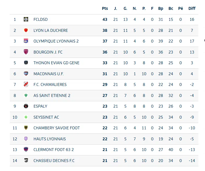 Dans cette course folle au maintien, les stéphanois sont à la lutte avec 6 autres écuries. Saint-Etienne (8e avec 24 points), Espaly (9e avec 23 points), Seyssinet (10e avec 23 points), Chambéry (11e avec 22 points), Hauts Lyonnais (12e avec 22 points), Chassieu Décines (13e avec 20 points) et Clermont (14e avec 18 points). Les quatre derniers à l'issue des 26 journées seront relégués en régional 1.