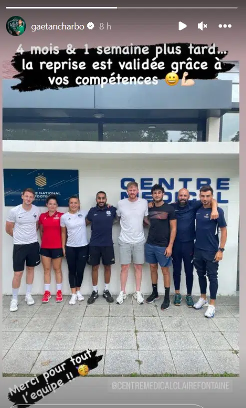 Sur son compte Instagram, l'attaquant de l'ASSE a tenu à remercier le centre médical Clairefontaine qui a pris en charge sa rééducation "4 mois et une semaine plus tard... la reprise est validée grâce à vos compétences". Un message qui annonce donc du positif à 3 jours de la reprise de l'entraînement !