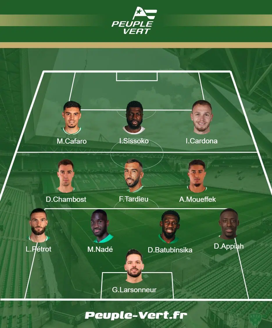 Ça ne bouge presque pas pour les deux autres milieux des verts. Olivier Dall’Oglio devrait aligner Aïmen Moueffek un cran plus haut sur lors du match face à Quevilly-Rouen. Le marocain avait été repositionné en numéro 6 au vu des profils de ses deux partenaires au milieu. L’autre milieu devrait évidemment être Dylan Chambost. L’annécien de naissance n’a pas su se montrer décisif le week-end dernier malgré de bonnes passes trouvées, aucun de ses coéquipiers a su en bénéficier pour permettre aux verts de ramener autre chose que la défaite à Rouen.