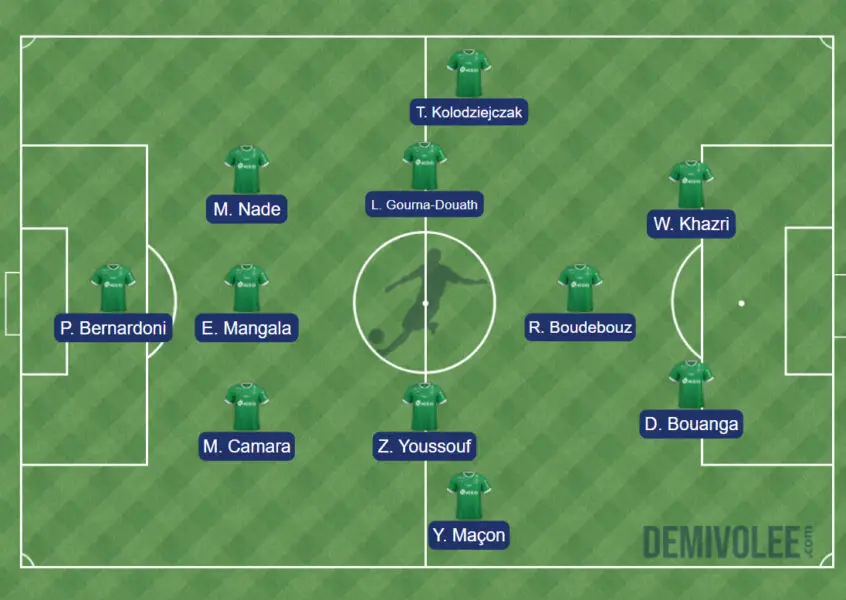 Denis Bouanga sera aligné sur le front de l'attaque. L'homme en forme du moment avec 5 buts et 4 passes décisives en 9 matchs doit poursuivre ses belles performances. Khazri sera aligné à ses côtés après avoir été ménagé contre Bordeaux. L'attaquant tunisien a affirmé ne ressentir plus aucune douleur à l'issue du match. Il ne pourra probablement pas jouer l'intégralité mais devrait commencer. Enfin, Boudebouz sera au cœur du jeu. L'ex international algérien produit des prestations moins abouties ces dernières semaines. Malgré tout, il s'est mué en passeur décisif pour Bouanga au Matmut Stadium !