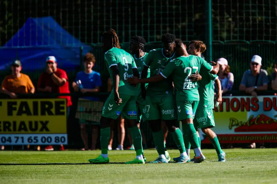 Jean-Philippe KRASSO of Saint Etienne celebrate his goal with Yvann MACON during the Friendly match between Grenoble and Saint Etienne on July 15, 2022 in Chambon-sur-Lignon, France. (Photo by Romain Biard/Icon Sport)