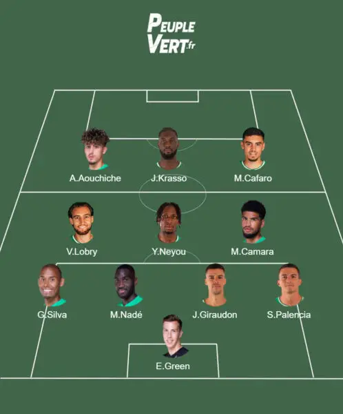 Sans concurrence à son poste, Jean-Philippe Krasso débutera à la pointe de l'attaque et devra concrétiser les offensives stéphanoises. Pour cela, il sera accompagné de Mathieu Cafaro et Adil Aouchiche sur les côtés pour le servir et le faire briller. Inoffensif pendant 45 minutes, nous espérons davantage voir un Saint-Etienne entreprenant aujourd'hui !