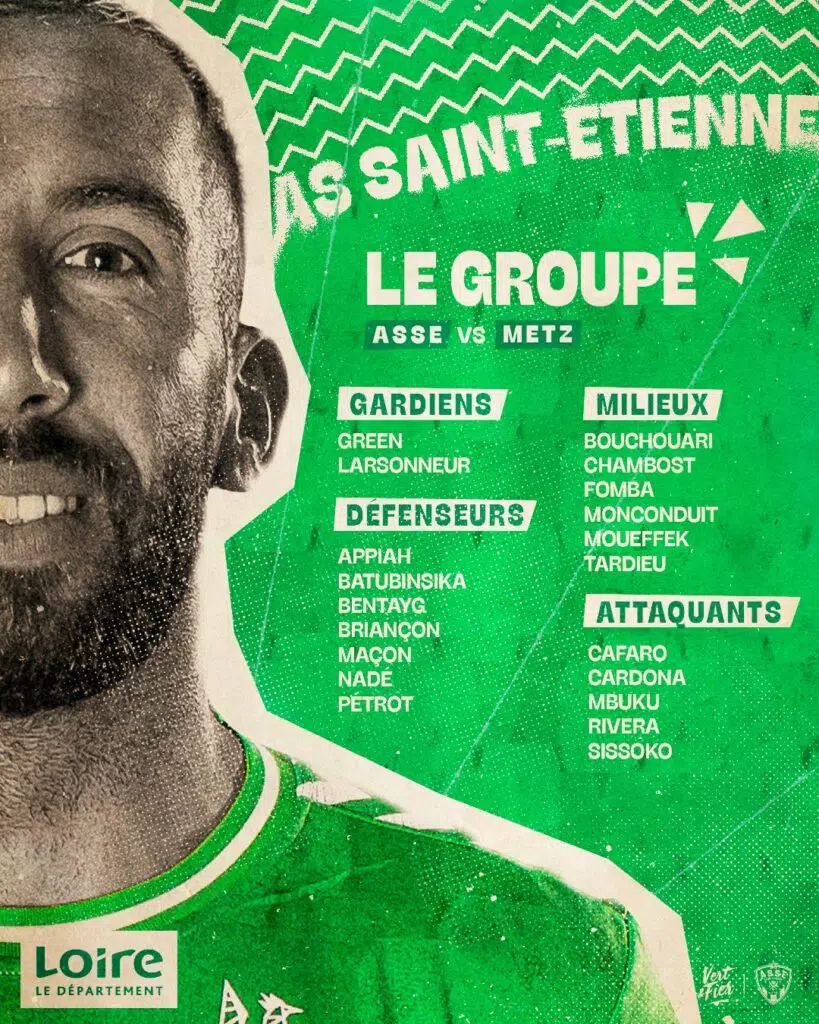 L’ASSE joue ce jeudi à 20h30 la première manche de la double confrontation la plus importante de son histoire moderne. Face au FC Metz, 16ème à l’issue de la saison de Ligue 1, les Verts jouent gros et seraient bien inspirés de faire un gros coup à domicile, dans un Geoffroy-Guichard qui s’annonce bouillant. Ce mercredi, Olivier Dall’Oglio a publié la liste des joueurs retenus pour ce match aller.