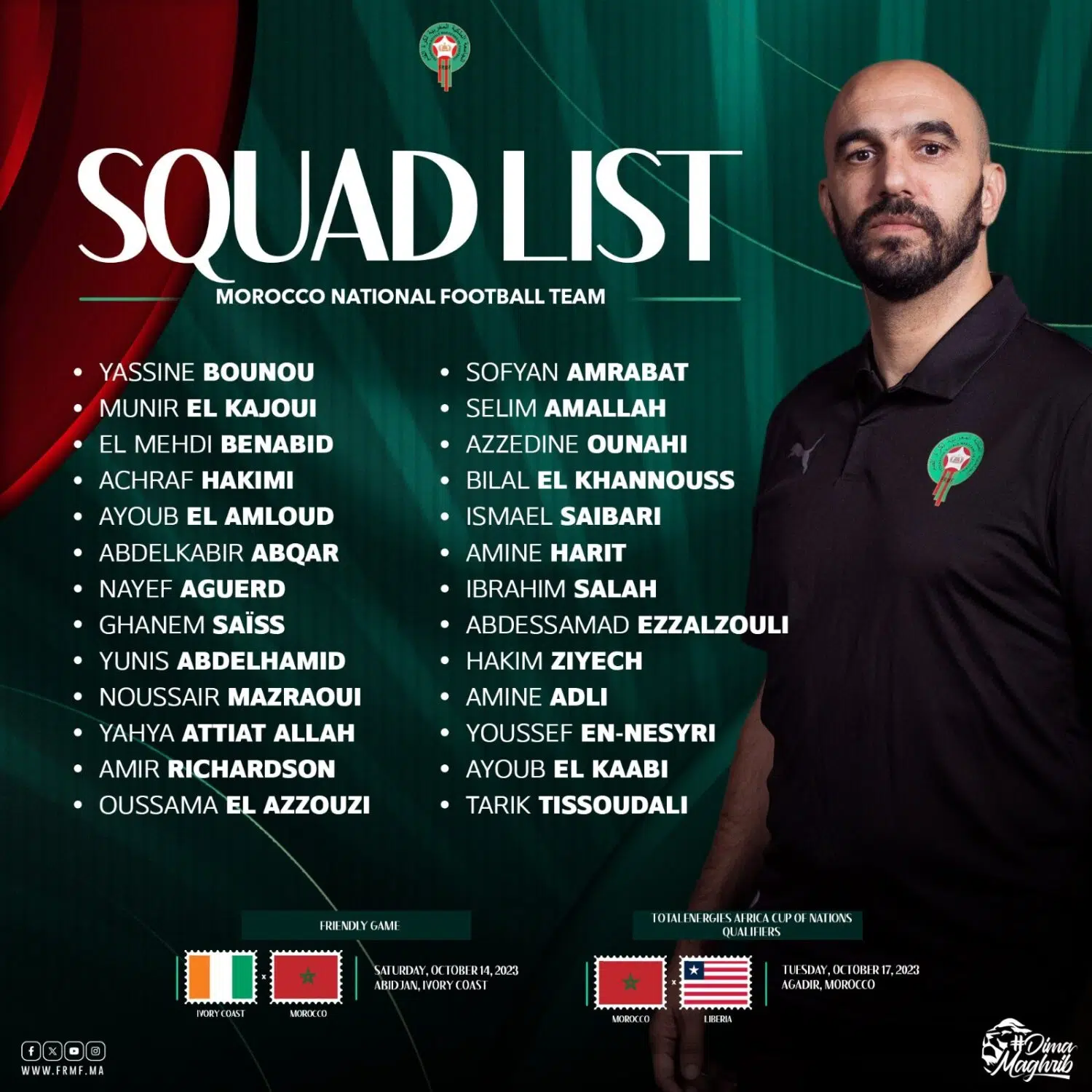 Le Maroc affrontera la Côte d'Ivoire de Jan-Philippe Krasso le 14 octobre en amical. Puis, recevra le Libéria le mardi 17 octobre.