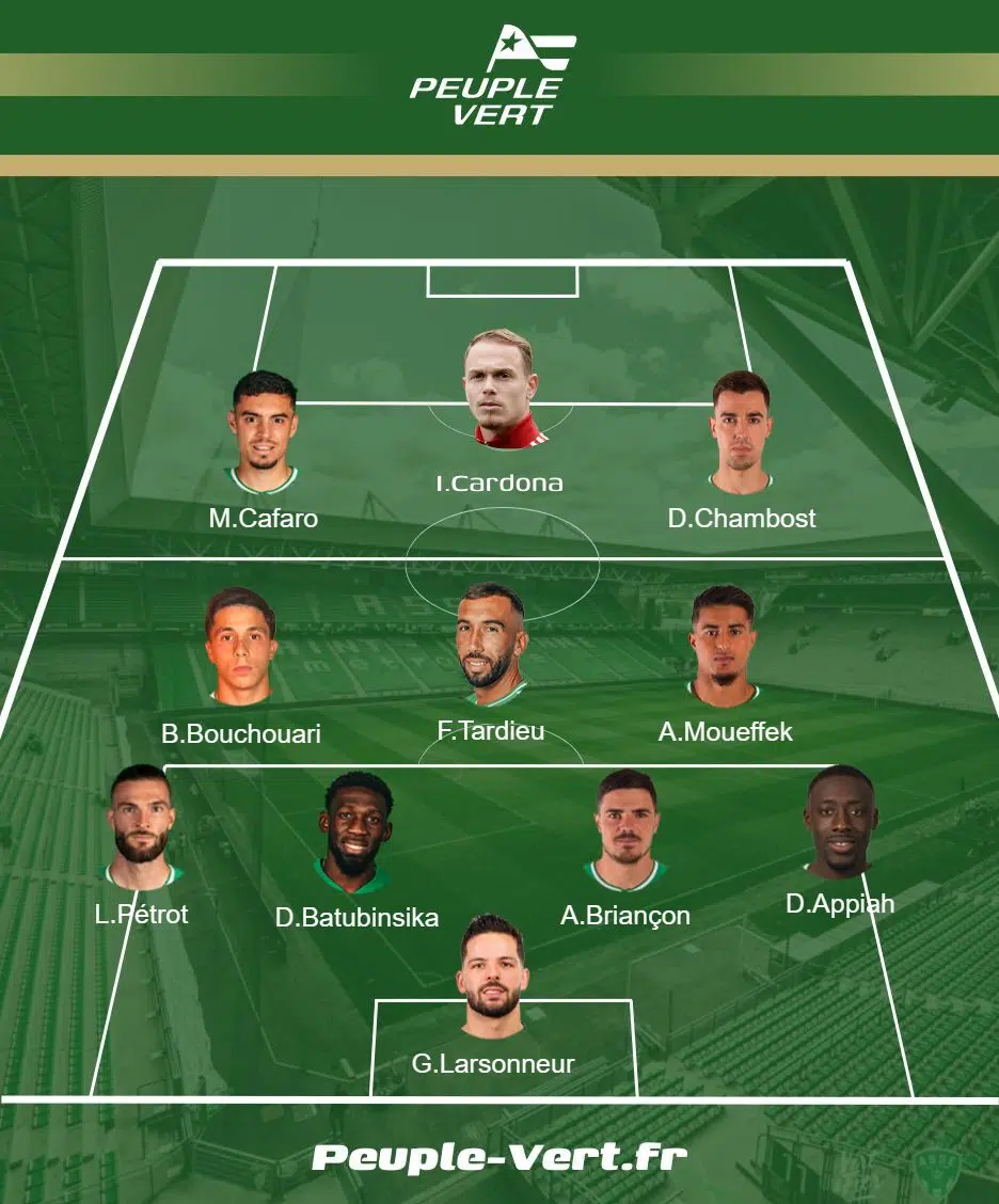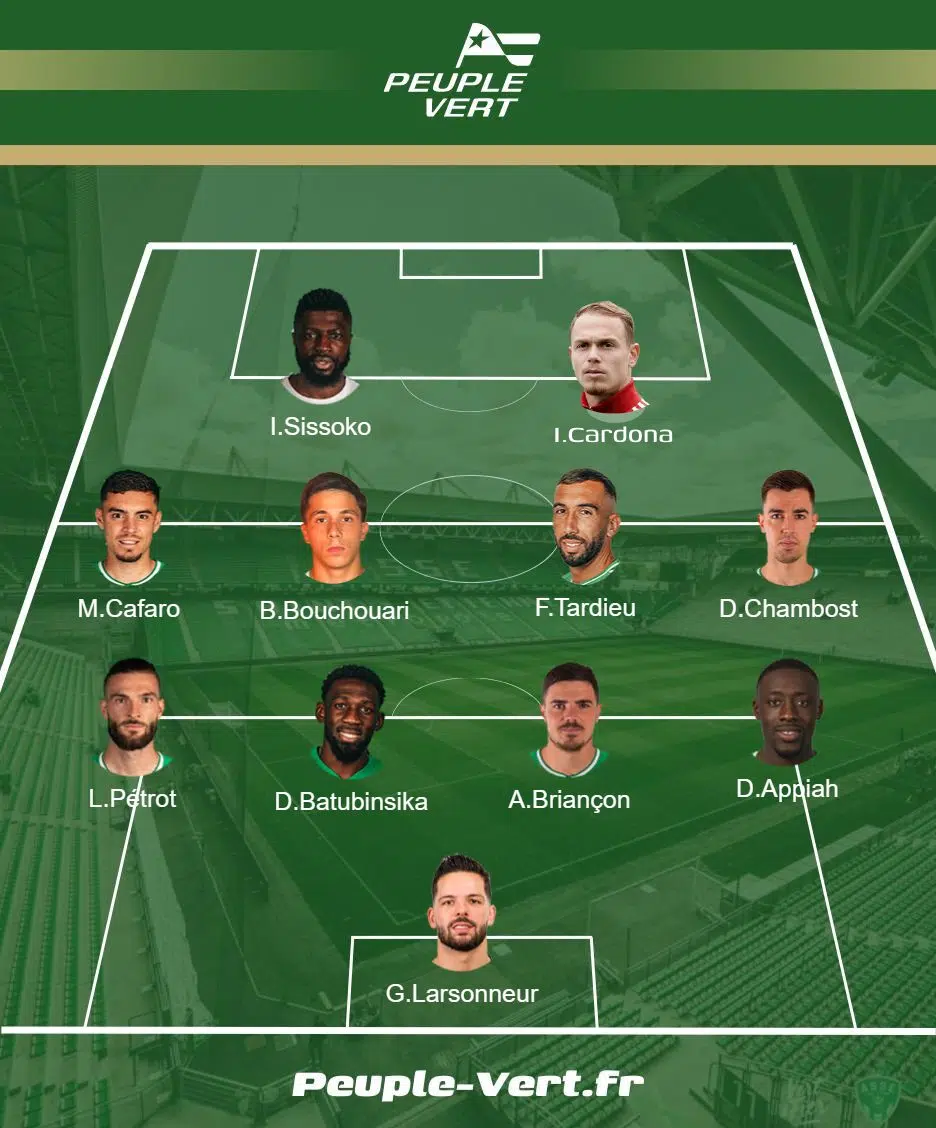 C'est peut-être le duo le plus attendu par les supporters. Le meilleur buteur des Verts a trouvé le chemin des filets à huit reprises cette saison. Depuis quelques matchs, c'est plus compliqué, même si son travail dos au jeu lors des deux dernières rencontres semblent fonctionner. Un peu trop isolé ses dernières semaines, seule en pointe, une possibilité de le voir aligner avec Cardona existe. Il faudra cependant patienter quelques semaines en attendant le retour de la CAN du Malien. L'avantage de ce système, c'est que les deux offensifs pourraient se trouver directement en combinant dans la verticalité. Pas forcément la peine d'attendre un ballon donné dans la largeur du terrain par un des ailiers ?