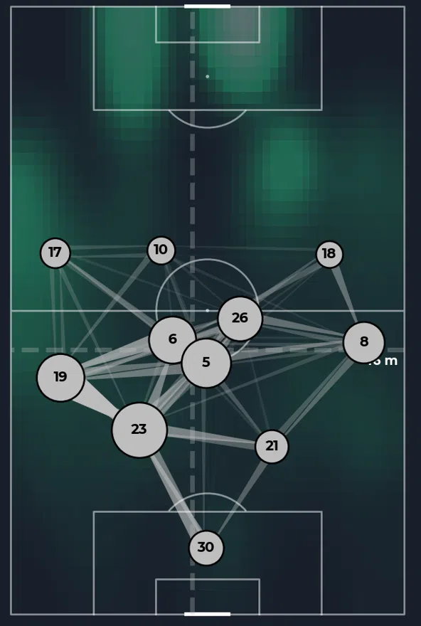 Parcours préférentiels sur la dernière rencontre (vs. Caen)
