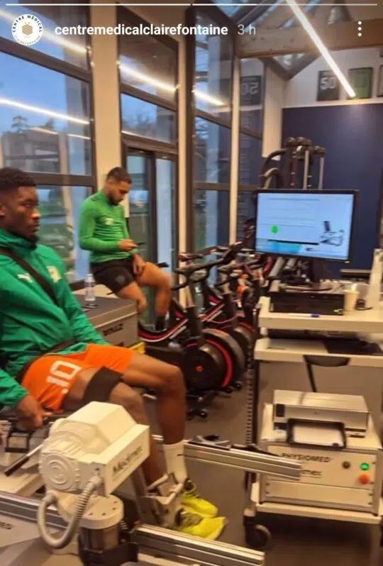 Une vidéo diffusée sur les réseaux sociaux montre Maçon en pleine séance de vélo. Après Ibrahima Wadji, qui s'était également rééduqué à Clairefontaine il y a quelques semaines, c’est au tour du latéral stéphanois de profiter de ce cadre unique pour préparer son retour.