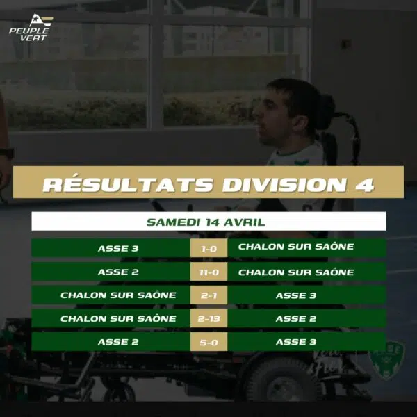 La première bonne nouvelle, c'est que les résultats sont plutôt favorables. Tout d'abord pour ASSE Cœur Vert 2 qui a pourtant vu son effectif réduit à 3 joueurs, c'est 3 victoires en 3 matchs ! 2 victoires contre Chalon-sur-Saône (11-0 et 13-2), puis une contre la seconde équipe stéphanoise 5-0. De leur côté ASSE Cœur Vert 3 s'est imposé face au Saône et Loiriens 1-0 avant de s'incliner 2-1.