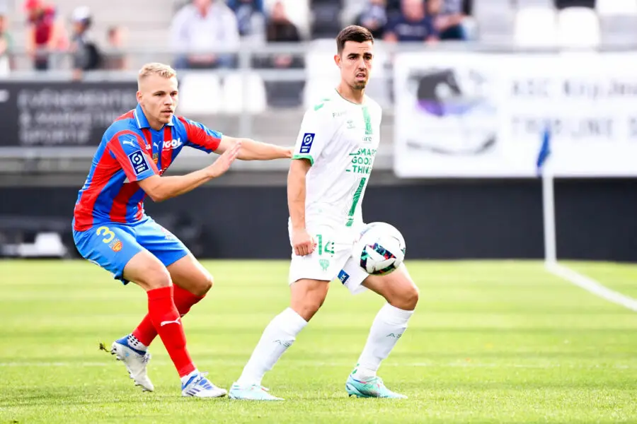 03 Sebastian RING (asc) - 14 Dylan CHAMBOST (asse) during the Ligue 2 BKT match between Amiens and AS Saint Etienne at Stade de la Licorne on October 22, 2022 in Amiens, France. (Photo by Loic Baratoux/FEP/Icon Sport) - Photo by Icon sport