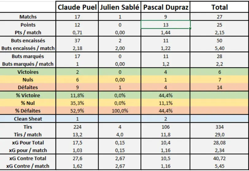Le coach haut savoyard a déjà rapporté davantage de points que Puel. En effet, avec 13 points en 9 matchs, il devance les 12 points obtenus en 17 matchs. Difficile de nier l'impact du mercato dans les résultats, toutefois, il est fort à parier que Puel n'aurait pas voulu de ce mercato hivernal effectué.