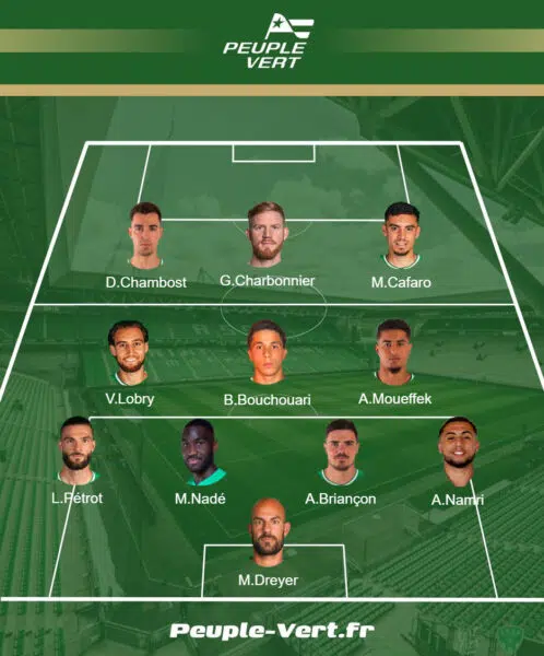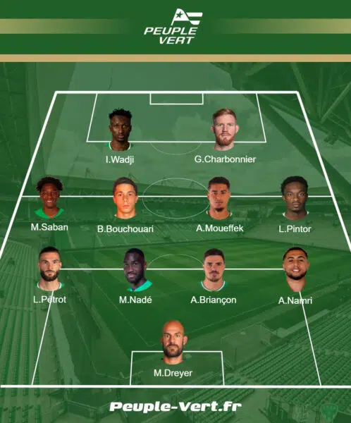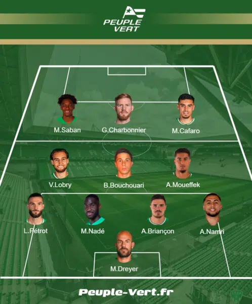 Au regard des événements, l'ASSE va forcément afficher une équipe inédite. Le groupe de Batlles pourrait commencer dans un 4-2-3-1. Derrière, la tendance est de savoir qui commencera entre Sow et Nadé aux côtés de Briançon. Au milieu, difficile de savoir qui commencera avec Bouchouari (Moueffek, Lobry ou Mouton).