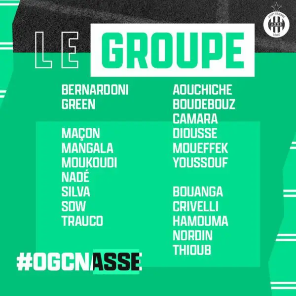 Le groupe retenu pour #OGCNASSE (36ème journée de @Ligue1UberEats)