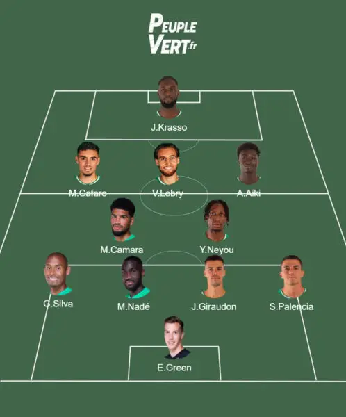 Ayman Aiki commencera à la place de Lenny Pintor ! Charles Abi sera en tribunes puisque les verts sont partis avec un groupe de 19. Pour le reste, Cafaro remplace Aouchiche et on repart avec les mêmes qu'à Nîmes !