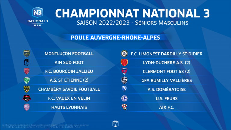 La poule de la réserve sera de 14 équipes. La poule pouvait logiquement être facilement devinée puisqu'elle concerne uniquement les équipes de la ligue. En effet, nous connaissions l'équipe qui descendait de national 2 (GFA Rumilly-Vallières) ainsi que les 3 équipes leaders de régional 1 (Aix FC, US Feurs et AS Domératoise). Ces 4 équipes remplacent Thonon Evian Grand Genève qui accède à la national 2 et Fc Velay, Académie Moulins et Aurillac qui sont tous les 3 relégués en régional 1. Les 10 autres équipes sont les mêmes que celles de la saison 2021-2022. Une poule qui sera relevée avec notamment le FC Limonest Dardilly qui a effectué un recrutement dantesque et qui a pour ambition de monter en national 2.