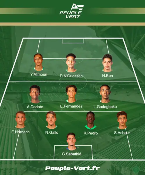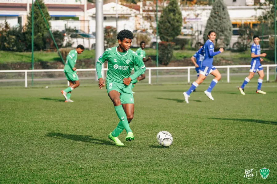 Ce but donne des ailes aux stéphanois. Ewan Hornech réalise un véritable numéro sur son flanc gauche. Après un grand pont puis crochet à l'intérieur de la surface, il donne une offrande à Nguessan qui transforme. 2-0 pour les Verts qui continuent d'appuyer sur l'accélérateur avant la mi-temps.