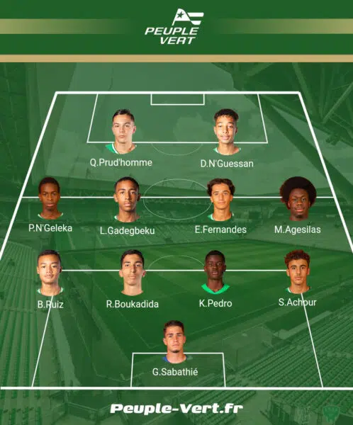 Malgré une possession largement en faveur de L'ASSE, la première situation est pour les visiteurs. Le numéro 9 adverse d'une tête chauffe les gants de Sabathie. Réaction immédiate de Kevin Pedro qui reprend le coup-franc de Gadegbeku mais le ballon passe à côté.