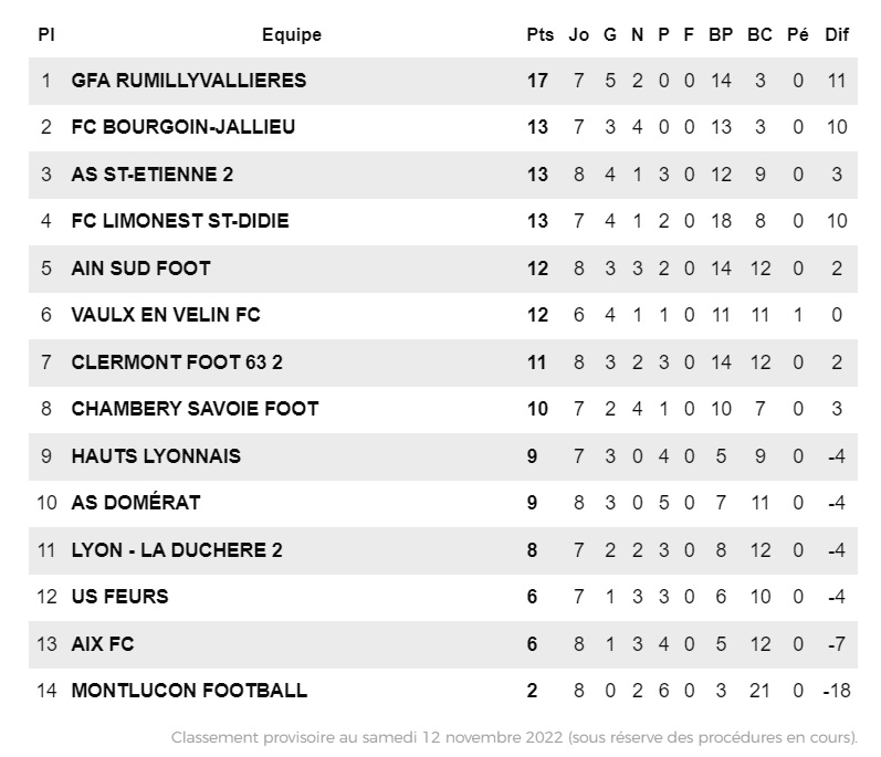 Au final, les verts font 1-1 et profitent des contre performance de Limonest (défaite 1-0 à Domerat) et d'Ain Sud (défaite 3-1 à Feurs) mais voient Rumilly-Vallières s'envoler avec 4 points supplémentaires et un match en moins !
