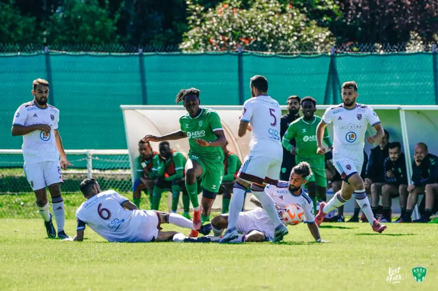 Après un début de match faveur des visiteurs, les stéphanois sont entreprenants et vont tenter de faire sauter le verrou avec de nombreuses occasions. Sow de la tête et Saban sont proches d'ouvrir la marque mais leur tentative passe peu à côté et empêche les verts de passer devant au tableau d'affichage. Malheureusement, l'équipe de Bourgoin va marquer juste avant la mi-temps suite à un corner. Un fléau pour l'équipe stéphanoise qui avait déjà perdu son premier match suite à un but sur corner. La deuxième mi-temps et Brogan et l'équipe de Neder n'arrive pas à construire et à tromper la vigilance d'un bloc adverse très compact et solide. En toute fin de match l'attaquant Bill va se faire expulser de façon assez hasardeuse.