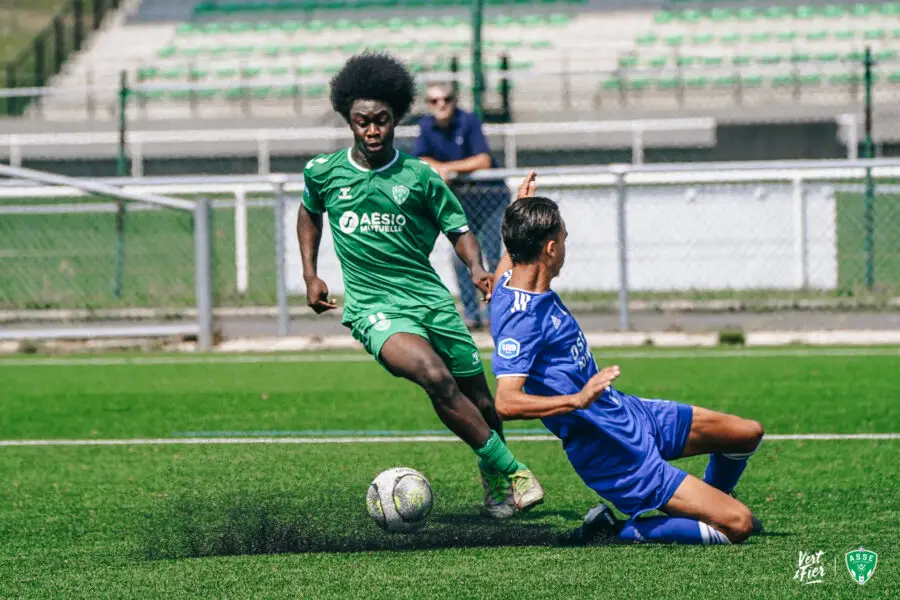 Peu d'occasion à se mettre sous les dents et les esprits s'échauffent régulièrement avec des duels intenses. La dernière occasion est stéphanoise avec un cafouillage qui finit par une frappe trop peu appuyé de Kenzo Kies. La pause est sifflée sur ce score nul et vierge.