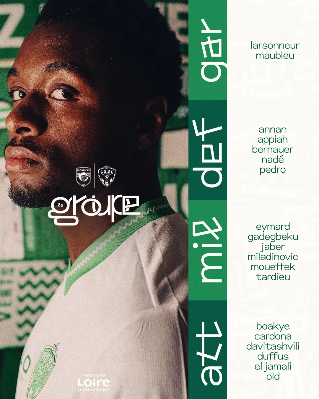 De ce fait, plusieurs choix ont dû être effectués par le staff stéphanois. Les voici avec la liste des 18 joueurs qui se déplaceront à Dunkerque ce samedi à 20h.