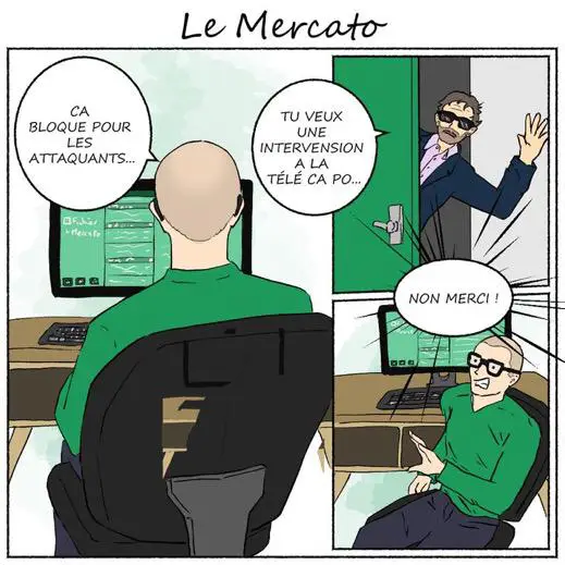 Alerte ! "Le bureau des plaintes" vient de sortir un nouveau dessin satirique de son chapeau. C'est l'oeil et la plume de @RuiKaze89 qui va nous évoquer l'actualité stéphanoise. En grande difficulté pour trouver le buteur de cette équipe, le club a essuyé le refus d'un attaquant évoluant au Portugal. La tâche s'annonce rude et ardue alors que les pistes Cardona et Grbic font surface...