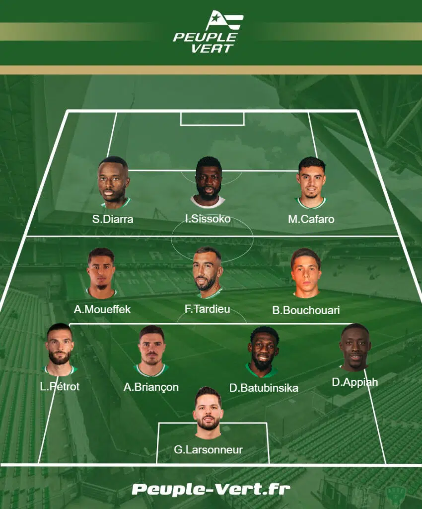 Après le bon match des verts à Caen, Laurent Batlles devrait reconduire son système en 4/3/3. Une continuité pour offrir des repères à son équipe. La consigne principale sera de jouer haut et imposer un rapport de force à l’équipe de Concarneau. Le match face à Caen a démontré que les Verts étaient capables de subir et piquer en contre-attaque, celui contre Concarneau devra démontrer qu’ils sont capables d’imposer leur jeu.