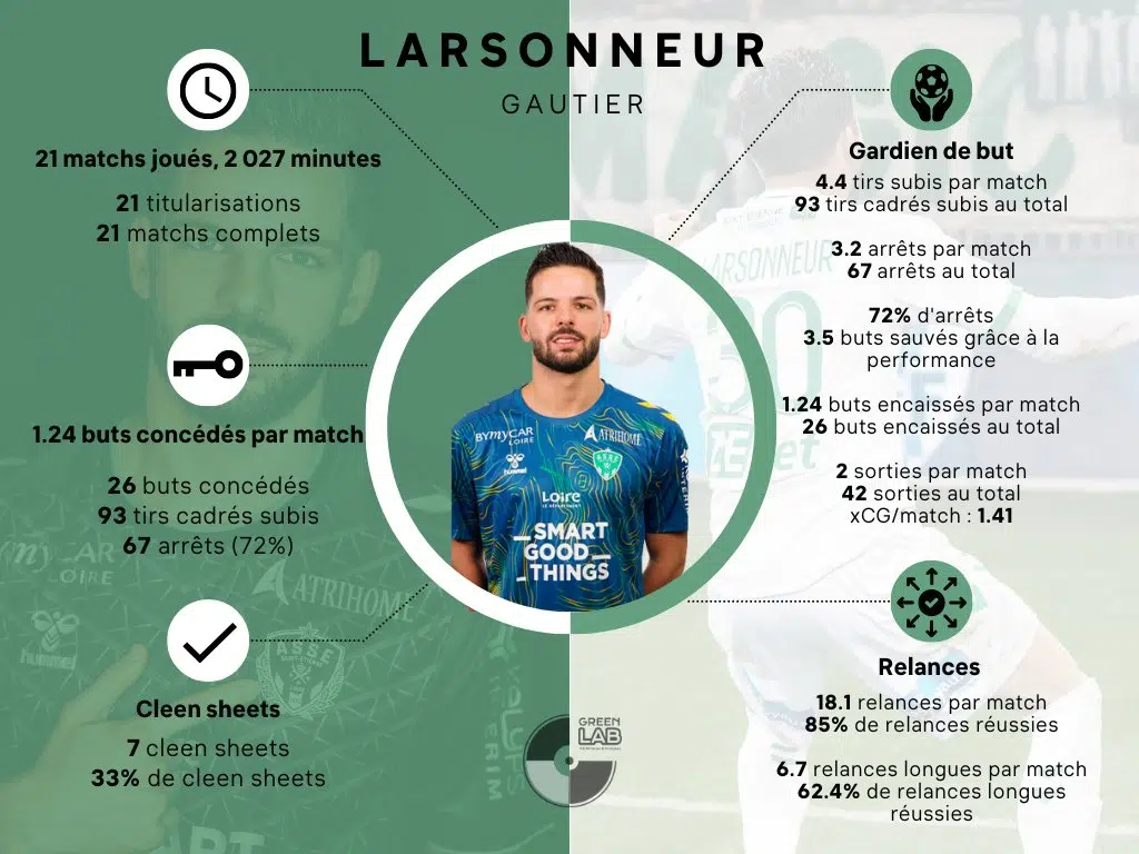 - 37/57 des buts encaissés par les Verts lors de sa présence sur le terrain