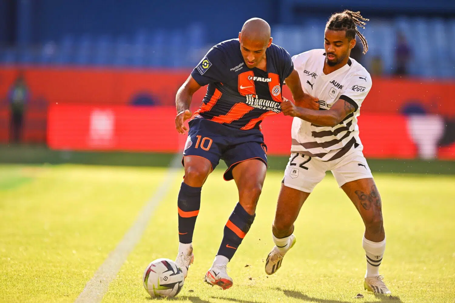 Wahbi KHAZRI of Montpellier and Lorenz ASSIGNON of Rennes during the French Ligue 1 Uber Eats soccer match between Montpellier Herault Sports Club and Stade Rennais Football Club at Stade de la Mosson on September 24, 2023 in Montpellier, France. (Photo by Baptiste Fernandez/Icon Sport)