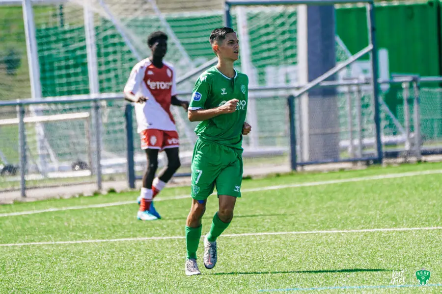 C'est pourtant les lyonnais qui vont ouvrir le score très rapidement dans le match. En effet, les verts se font surprendre rapidement dès l'entame de match mais ne vont pas en rester là. La réaction arrive très rapidement. Suite à un bon débordement de Quentin Prud'homme (photo), ce dernier centre pour Méite qui contrôle et ajuste le gardien. Les compteurs sont remis à zéro ! Ils vont même prendre l'avantage ! Sur une belle ouverture de Mimoun, Prud'homme se présente face au portier adverse et gagne son duel d'une frappe croisée. 2-1 pour l'ASSE !