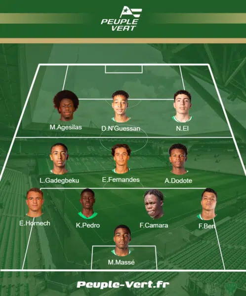 C'est une équipe ultra-jeune qui était alignée par l'entraîneur Moreau pour ce match. Avec deux U15 (Nguessan et Masse) et cinq U16 (Gadegbeku, Camara, El Jamali, Ben Rahem et Dodote), c'est plusieurs inexpérimenté du niveau qui évoluaient.