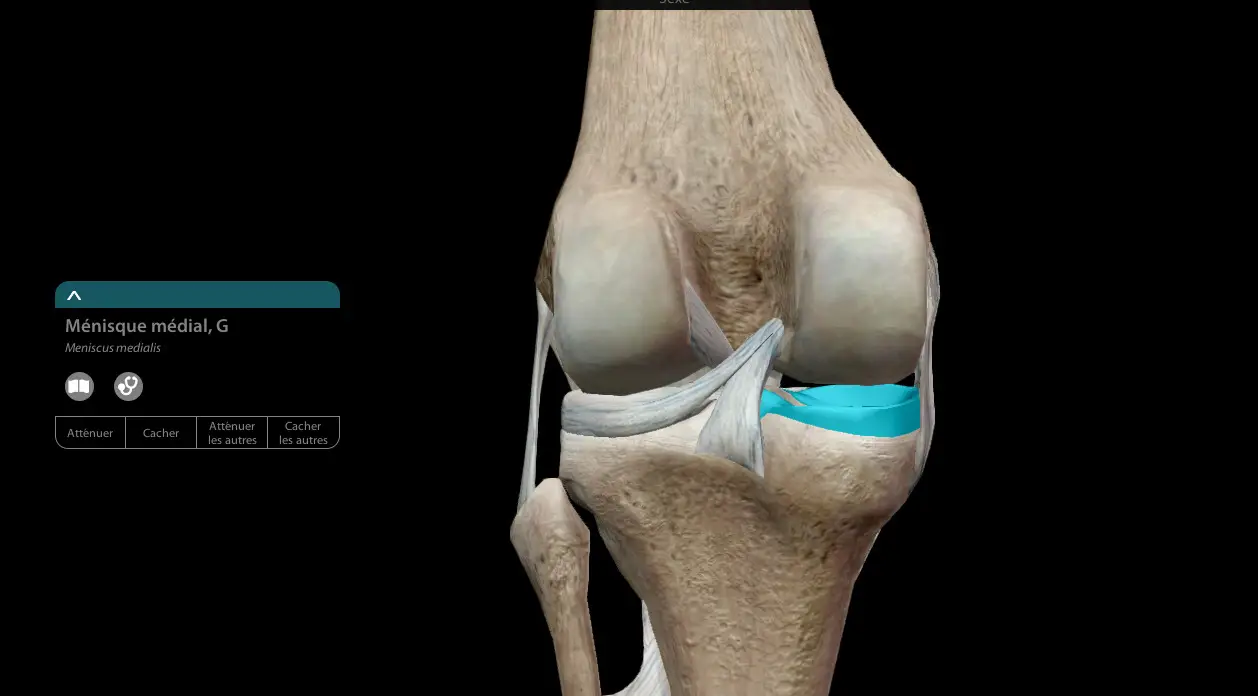 - Le ménisque externe ou latéral, regardant vers l'extérieur.