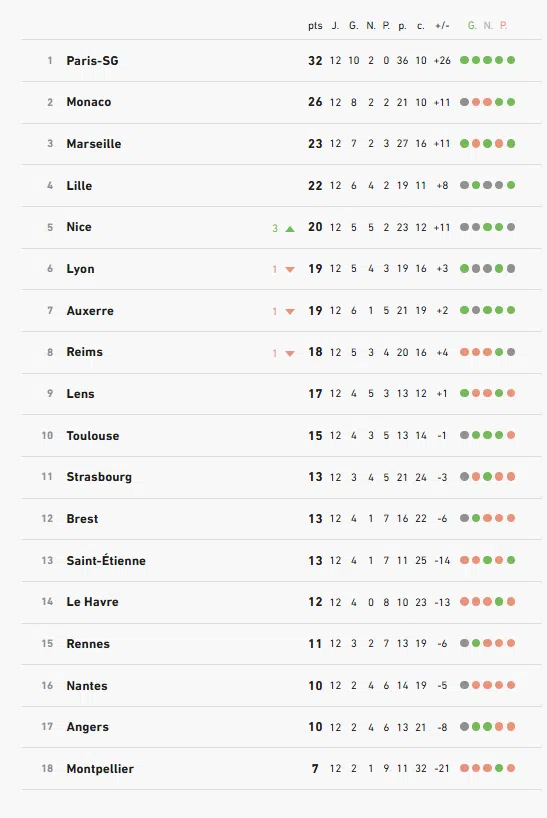 Ce week-end du 23-24 novembre marquait la 12ᵉ journée de ligue 1. Tour des stades des différents résultats du week-end.