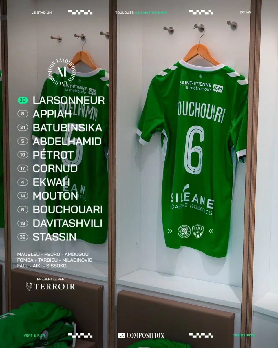 Déjà amputé d'un grand nombre de ses joueurs, Olivier Dall'Oglio composait le weekend dernier avec les moyens du bord. Un système à cinq défenseurs, avec un trio friable Abdelhamid - Batubinsika - Pétrot, et Benjamin Bouchouari dans un rôle de piston. Mais le bricolage pourrait se poursuivre pour le déplacement au Stadium de Toulouse (20h45, 15e journée de Ligue 1). En effet, Yvann Maçon était opéré la semaine dernière et devrait clôturer l'année 2024 dans l'infirmerie, alors que Mickaël Nadé ne devrait pas être à 100%. Le défenseur subissait une "une entorse externe du ligament latéral du genou droit", avançait l'Equipe après le derby (1-0). Véritable pilier en défense, le Stéphanois manquait effectivement grandement aux Verts face aux Phocéens.