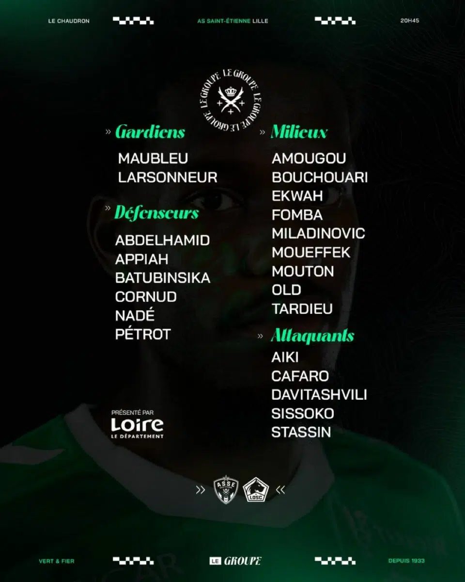 L'ASSE accueille Lille ce vendredi à l'occasion de la quatrième journée de Ligue 1. Orphelins du moindre point, les hommes d'Olivier Dall'Oglio devront montrer un meilleur visage. Le groupe du coach a été dévoilé ce jeudi.
