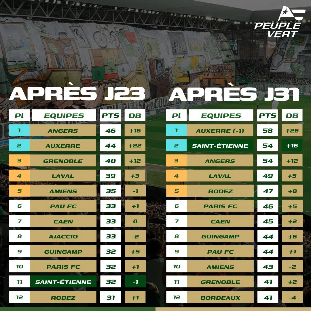 Intouchable, il y a encore quelques semaines, la seconde place est aujourd'hui pour l'ASSE. Les Verts devront réaliser un beau parcours d'ici à la fin mai pour finir en apothéose…