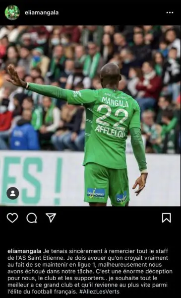 Très peu sont les joueurs qui ont pris la parole depuis 2 semaines et la relégation de l'AS Saint-Etienne. Recruté pour sauver un navire à la dérive, Eliaquim Mangala n'a pas réussi sa mission avec son équipe. Pour la première fois depuis la désillusion, il se livre sur son compte instagram.