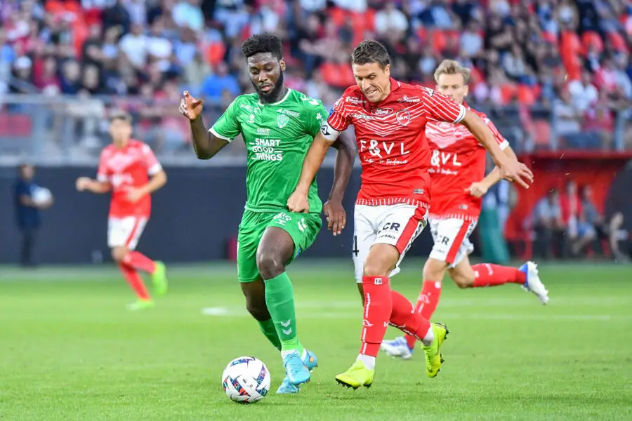 Jean Philippe KRASSO of Saint Etienne during the Ligue 2 BKT match between Valenciennes and Saint Etienne at Stade du Hainaut on August 27, 2022 in Valenciennes, France. (Photo by Franco Arland/Icon Sport)