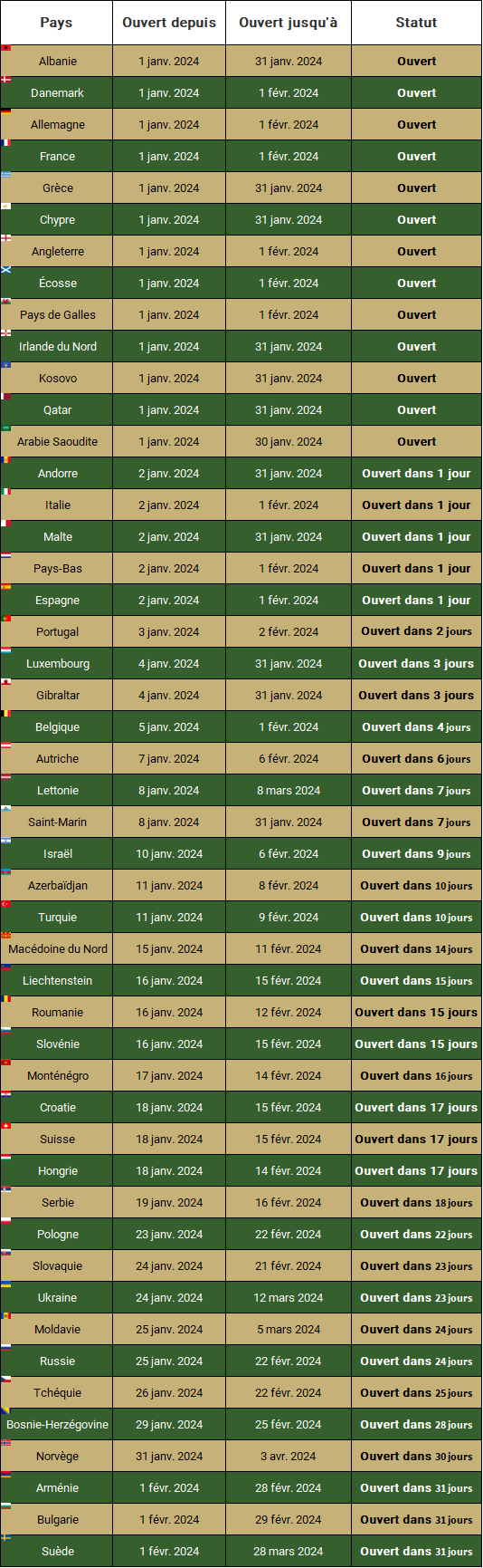 La période complémentaire d’enregistrement des nouveaux joueurs débute le 1er janvier 2024 à 0h00 et s’achève le 1er février 2024 à 23h59:59 heures. Les Verts auront jusqu'à cette date pour effectuer leurs transactions dans le sens des arrivées. Espérons, comme chaque saison, que de nouveaux renforts arriveront le plus tôt possible afin de redonner un coup de boost à une équipe stéphanoise qui a clairement besoin de sang neuf.