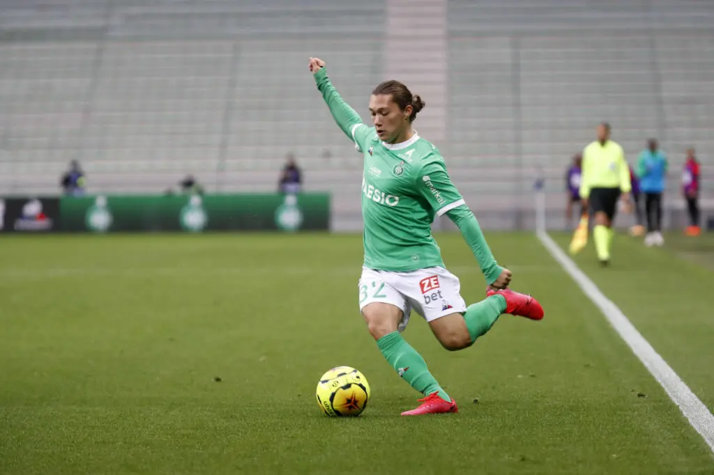 Maxence RIVERA of Saint Etienne during the Ligue 1 match between AS Saint-Etienne and Dijon FCO at Stade Geoffroy-Guichard on May 23, 2021 in Saint-Etienne, France. (Photo by Romain Biard/Icon Sport) - Maxence RIVERA - Stade Geoffroy-Guichard - Saint Etienne (France)