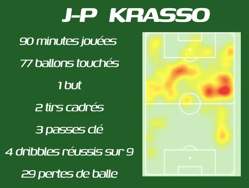 L'AS Saint-Etienne enchaîne. Dixième match sans défaite pour Laurent Batlles et ses hommes. Parmi les hommes forts, on retrouve inévitablement Jean-Philippe Krasso et Niels Nkounkou. Focus sur le match de ces deux joueurs.