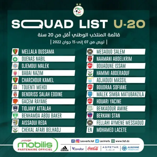Aussi, les fennecs auront en ligne de mire la seule place qualificative à la CAN TotalEnergies U20 – Egypte 2023 qui aura lieu du 18 février au 12 mars 2023 en participant au tournoi UNAF U20 en Égypte.