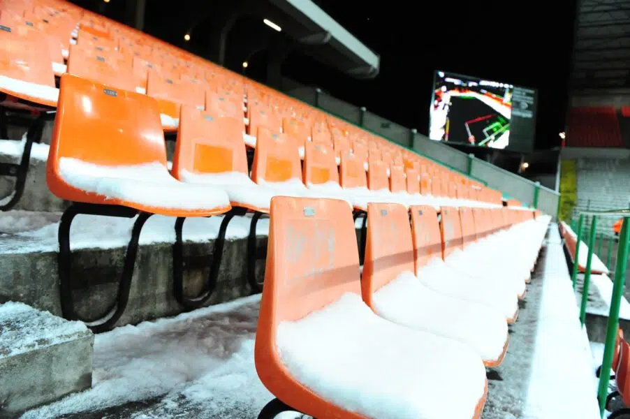 La neige tombe à gros flocons dans le Forez en ce début du mois de mars 2005 et la pelouse du stade Geoffroy-Guichard est couverte d’un blanc-manteau qui rend la tenue d’un match de football très problématique. Pire encore, il continue de neiger en abondance alors que la rencontre est sur le point de débuter. Autant le dire tout de suite, l’arbitre, Monsieur Garibian qui est pourtant seul juge, n’aurait jamais dû donner le coup d’envoi.